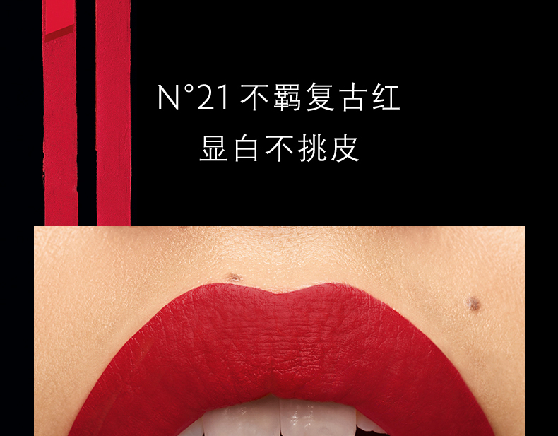 “小金条”,一如它的外形,黑金配色的长方体造型,精致优雅,膏体有着丝绒般柔滑的质地、轻盈薄透又持久的妆效,搭配极雾显色配方打造的更浓郁饱和的色泽,加上独特订制斜角科技,勾勒出精致的嘴唇形状,提升唇妆的质感。